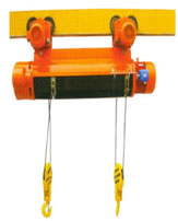 CDFMDF)-D型單機(jī)雙吊點(diǎn)鋼絲繩電動(dòng)葫蘆產(chǎn)品簡(jiǎn)介: 本系列鋼絲繩電動(dòng)葫蘆主要適用于吊點(diǎn)距離不太長(zhǎng)的小型水利、水電工程起吊閘門(mén)用。