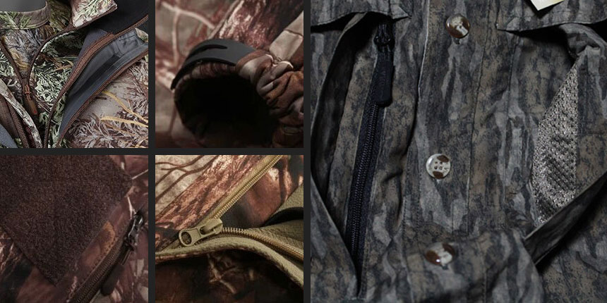 迷彩獵裝的款式富于變化,以輕松、多袋、實(shí)用為主,注重色采的隱弊性、口袋的合理性、手腳袖口的收帶及防風(fēng)功能。